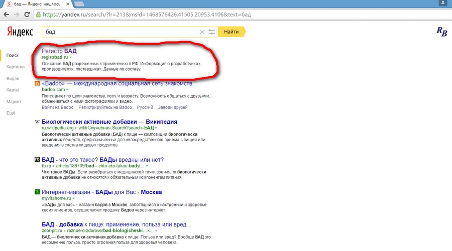 На протяжении многих лет по запросам (основным ключевым словам и фразам) «БАД», «бад», «биологически активные добавки», «производители бад», «классификатор бад», «реестр деклараций», «производство БАД», «сертификация бад» сайт ЕЭС "Регистр БАД" www.registrbad.ru позиционируется в TOP3 (на первых местах первых страниц) ведущих поисковых систем и каталогов GOOGLE, YANDEX , MAIL.RU , YAHOO , YAHOO , Яндекс Каталог , GOOGLE Каталог , DMOZ Open Directory Categories и др. .